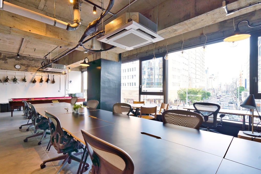 時々みんなで集まる利便性の高いオフィス。立地だけでなく、提供する家具にもこだわっています。