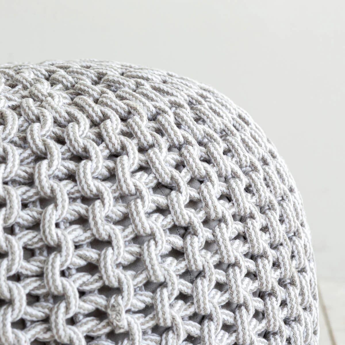 コットンを丁寧に編み上げて作られた、立体感のある表情が特徴のプフです。プフ(Pouf)とは、モロッコでつかわれているクッションスツールのこと。中材には、ポリウレタン発砲ビーズがたっぷり入っており、しっかりとした安定感があります。少し形が崩れても、ちょっと整えると元の形に戻ってくれるのもポイントです。