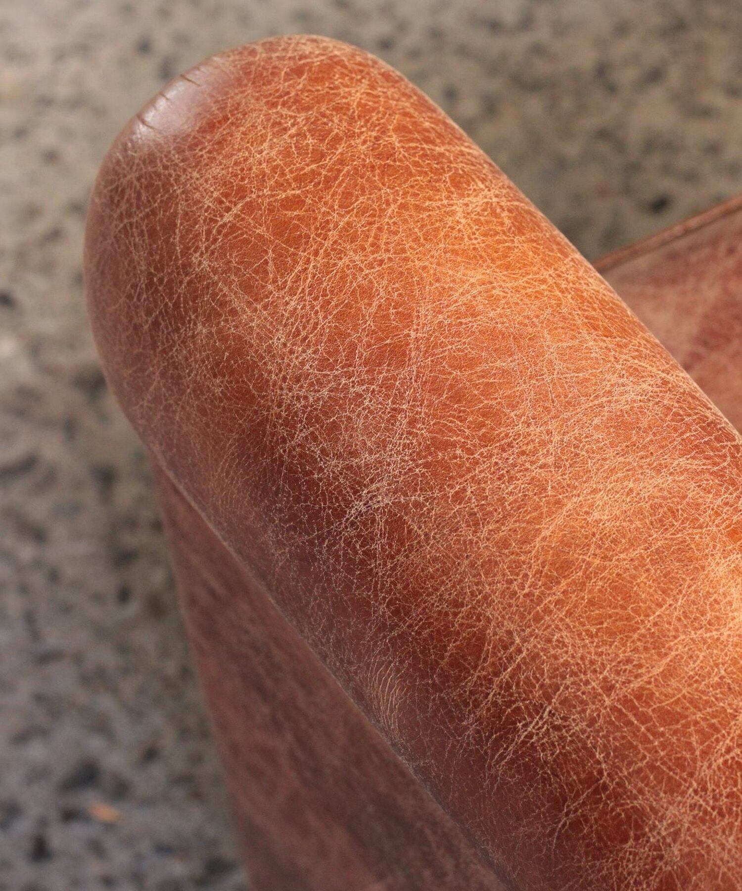 クラブチェアの由来は上流階級の紳士の社交場「ジェントルマンズクラブ」から。革張りのため重厚感はありますが、サイズ感をコンパクトにしているため圧迫感がなく、日本の家庭でも違和感なくお使いいただけます。